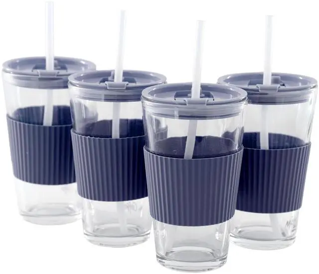 Upgrade your beverage experience with the Mr. Coffee Sip Savvy 4 Piece 15 Ounce Glass Cup Set. Each cup features a durable, ribbed silicone sleeve that not only adds a modern touch of style but also provides a secure, comfortable grip. The 15-ounce capacity is perfect for enjoying coffee, tea, smoothies, or any cold beverage throughout the day. Designed with convenience in mind, these cups are made from high-quality glass that is dishwasher safe for easy cleanup.