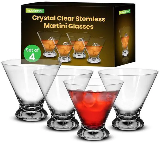 The NutriChef NGLMT4 Crystal Clear Whiskey Glass Set features four hand-blown, ultra-clear glasses perfect for entertaining or casual sipping. Crafted from premium, lead-free crystal, these 8.4 oz stemless glasses boast a balanced, chip-resistant construction and elegant silhouette. Whether you're serving cocktails, bourbon, or straight whiskey, the sleek design elevates your drink experience. Dishwasher safe and beautifully packaged, this set makes a thoughtful gift for any spirits lover.