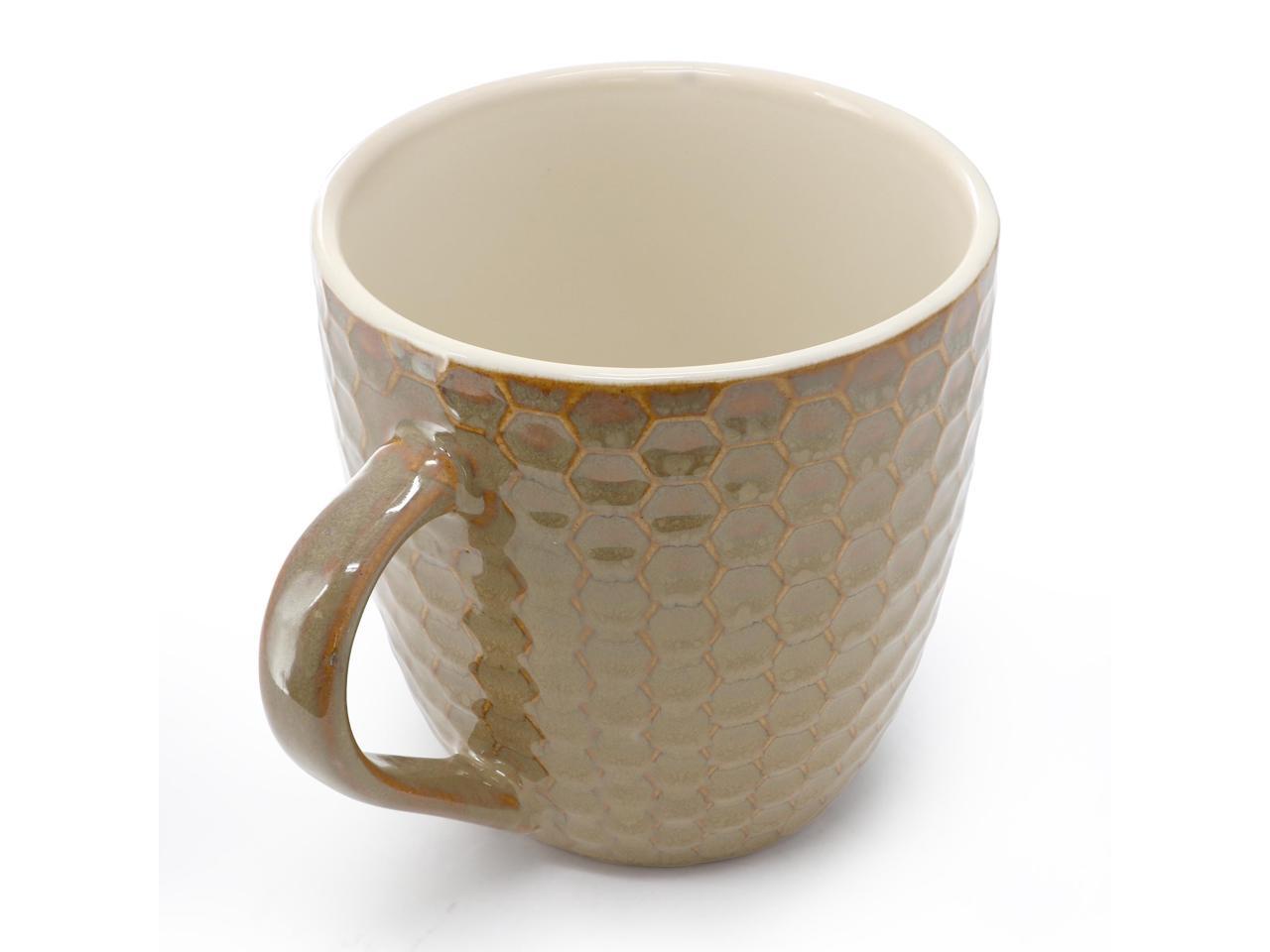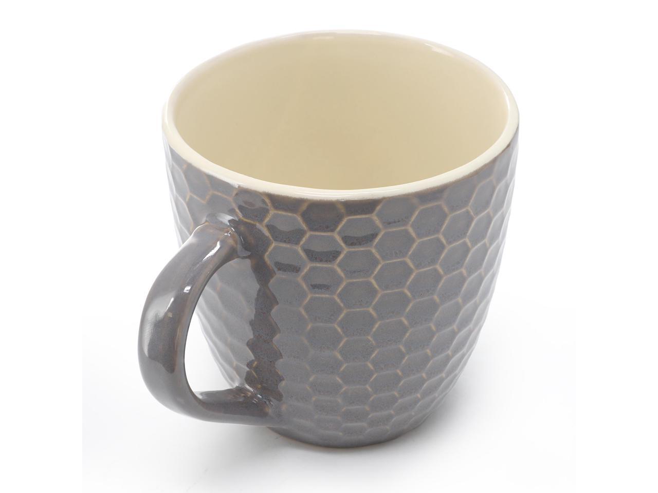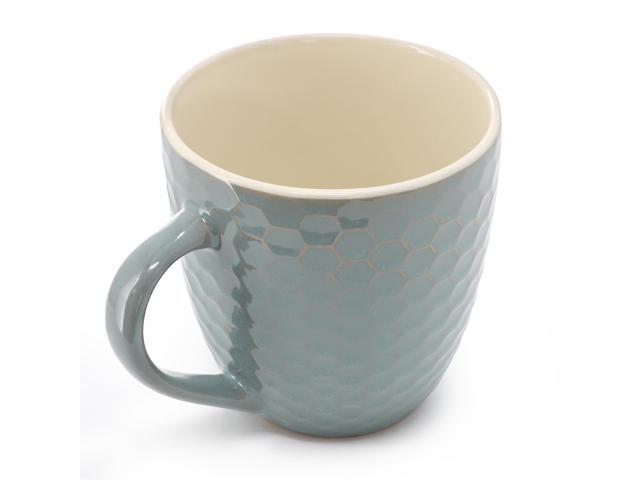 Set includes two taupe 15 oz. mugs, two teal 15 oz. mugs and two mocha 15 oz. mugs