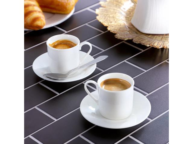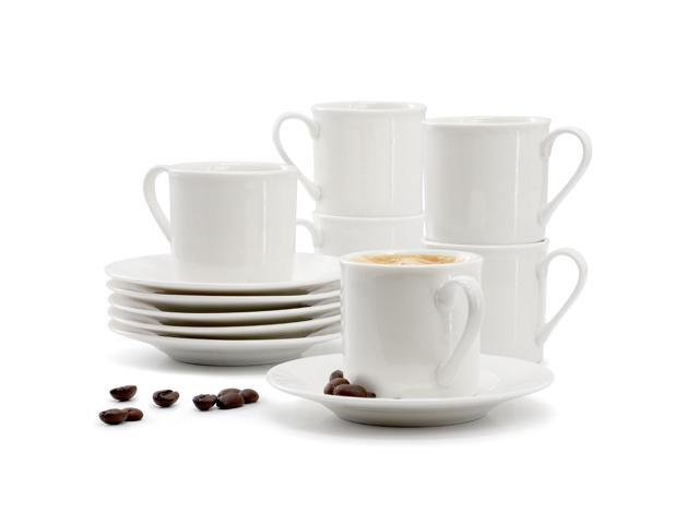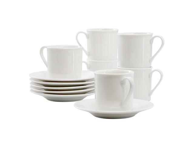 Elama Aspin 12 Piece 2.5 Ounce Porcelain Espresso Cup Set in White with Saucers