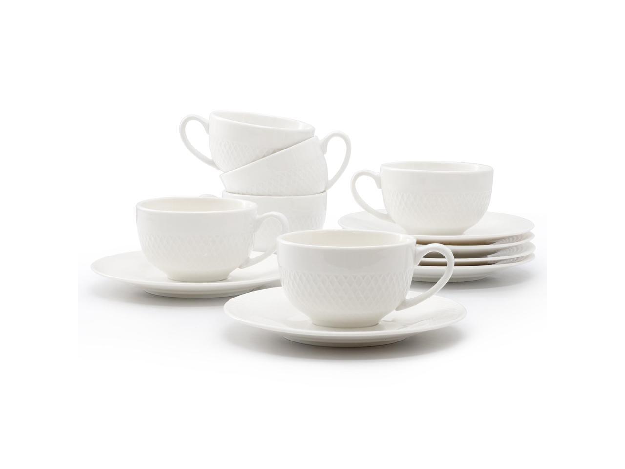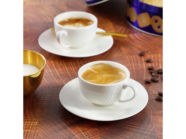 Elama Luna 12 Piece 3 Ounce Porcelain Espresso Cup Set in White with Saucers