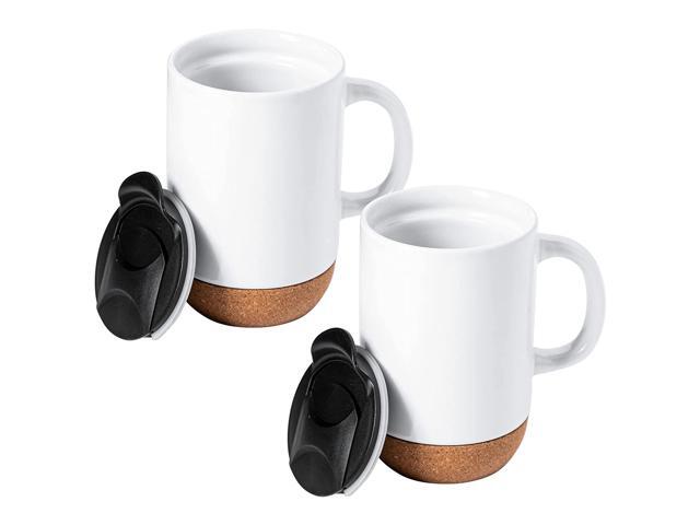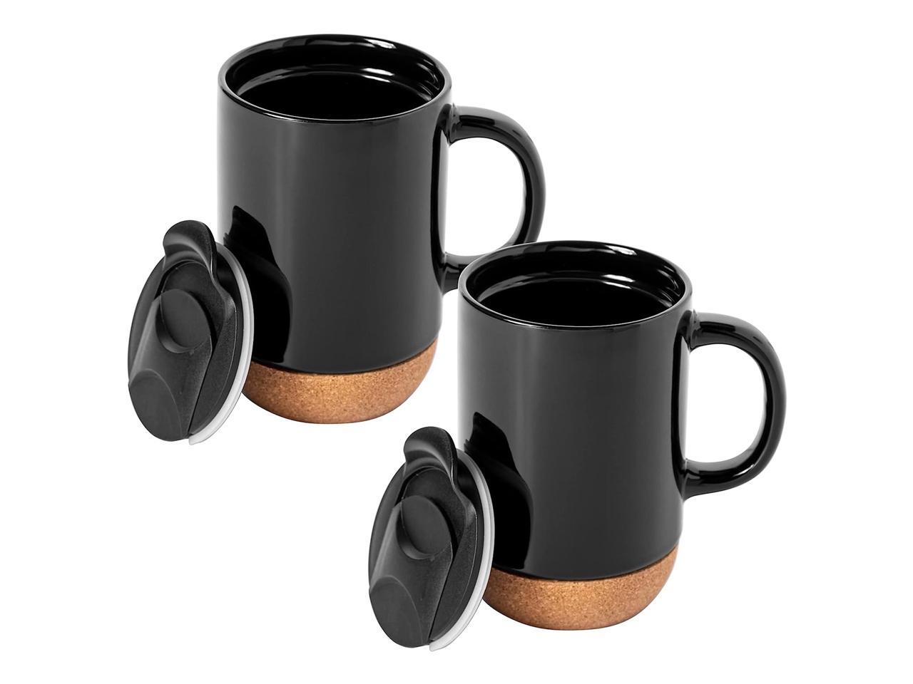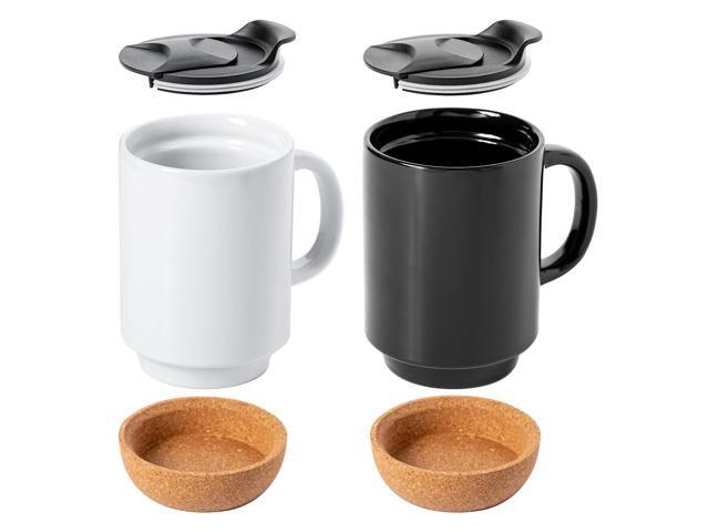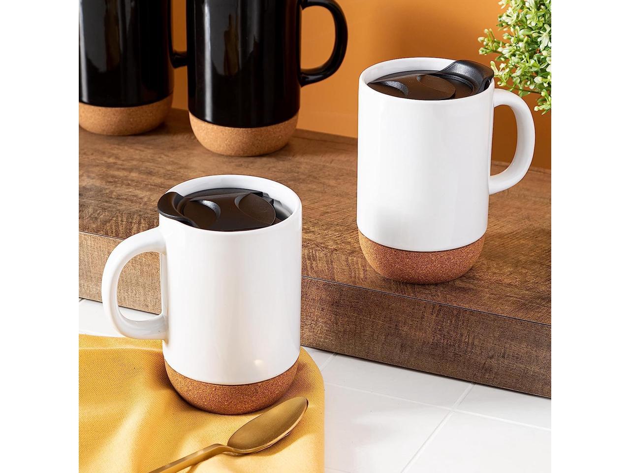 Gibson Home Modani 4 Piece 16.5 Ounce Stoneware Travel Mug Set with Lid and Cork Base