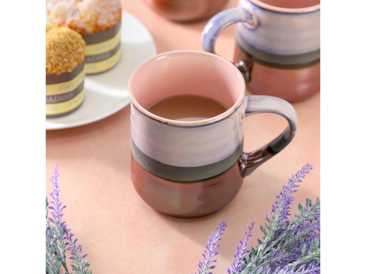 Gibson Home Copper Tonal 4 Piece 18 Ounce Stoneware Cup Set in Mauve