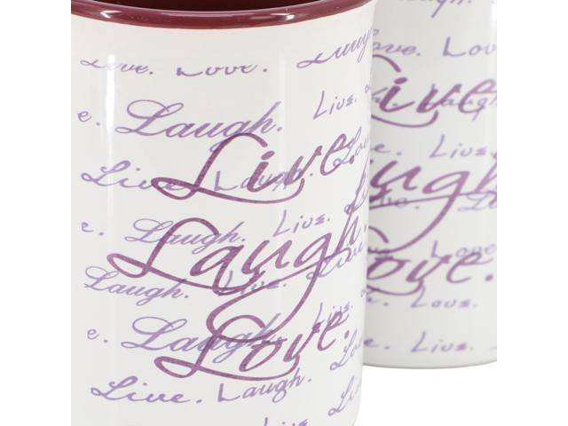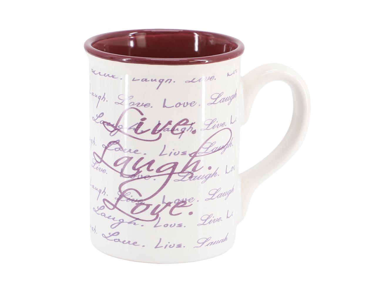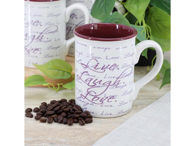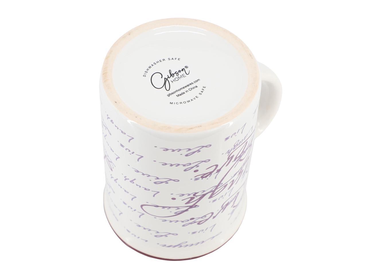 Gibson Home Inspirational Words Live, Laugh, Love 4 Piece 16 Ounce Stoneware Mug Set in Purple