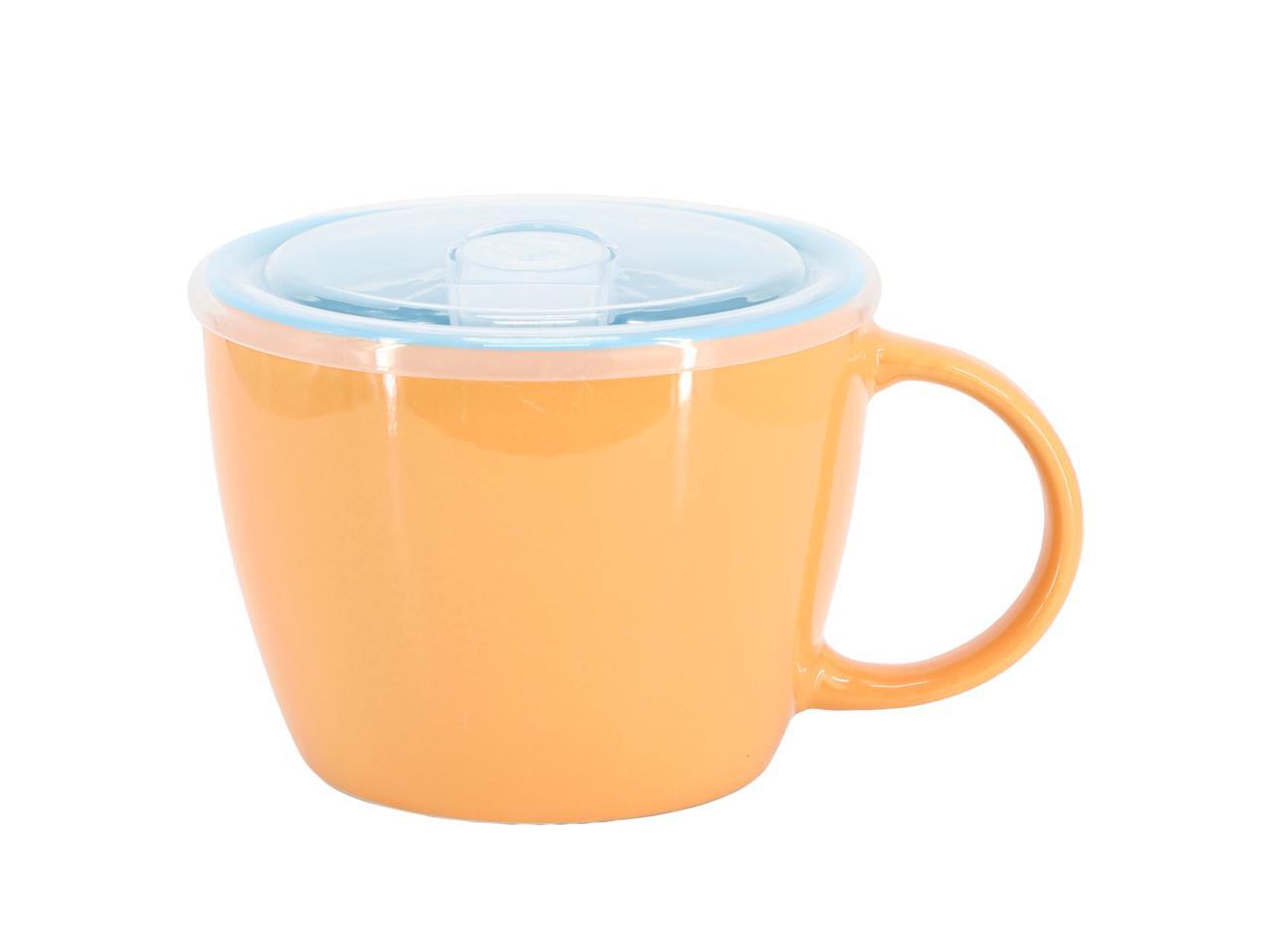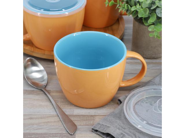 Gibson Home On The Go 4 Piece 25 Ounce Stoneware Soup Cup Set with Lid in Peach