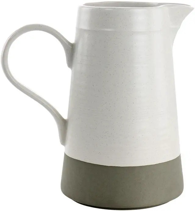 The Bee and Willow Milbrook 60oz serving pitcher has a charming and earthy look that will add a modern farmhouse style to your table. Use this pitcher to serve guests at small gatherings or as an every day household staple for your favorite beverages! Durable stoneware construction is long lasting and dishwasher safe for easy clean up. Textured body and curved handle add a simple yet elegant style to this piece.