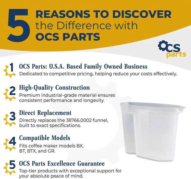 The OCSParts 48 oz Water Pitcher features an easy pour design with a comfortable grip, allowing for effortless and spill-free pouring with just one hand. Its compact size and shape make it a perfect fit behind your coffee maker, ensuring a seamless and convenient coffee-making experience.