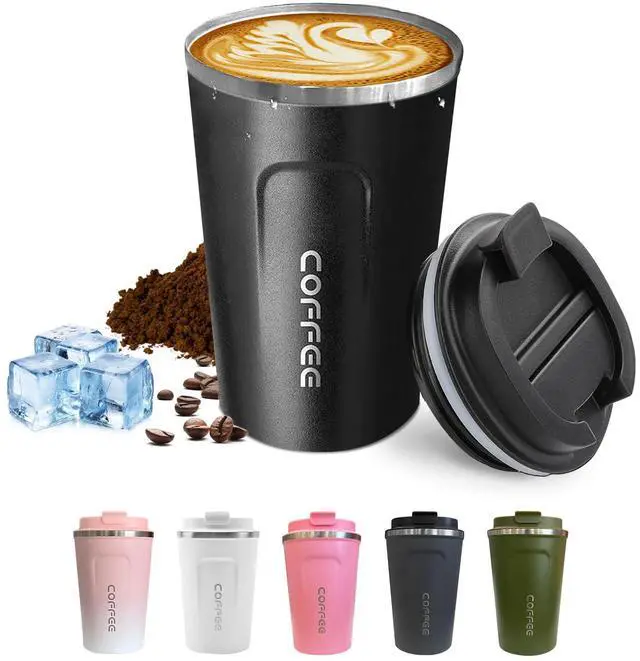 Travel coffee mugs leak-proof, reusable coffee cups with lids, stainless steel vacuum insulated coffee tumblers, thermal insulation cups for men & women keep drinks hot & cold(2nd-Black, 12OZ)