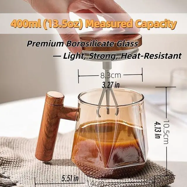 Self Stirring Coffee Mug, High Borosilicate Glass Mixing Cup, 400 ml / 13.5 oz Automatic Mug for Coffee, Matcha and Milk, 6000 RPM 48 dB Artistic Desk Mug for Home Office, Vintage Amber