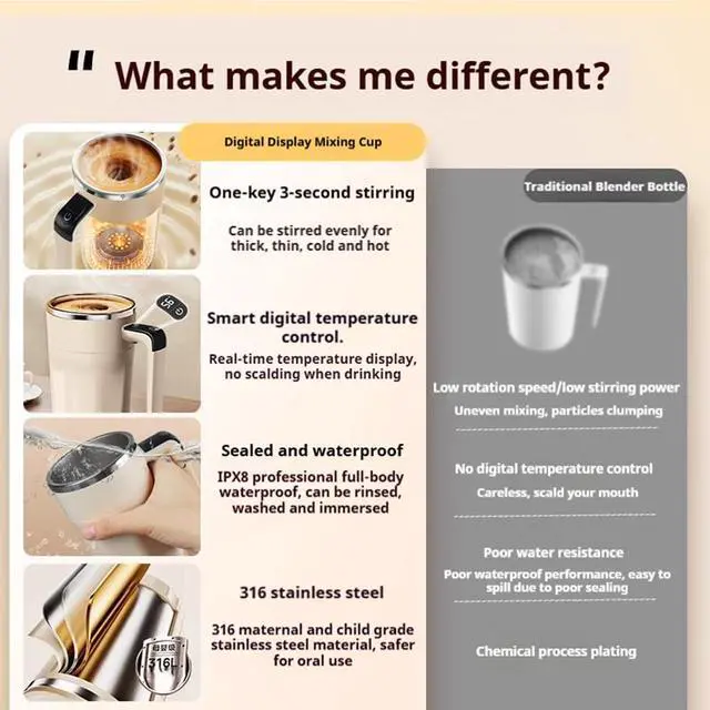 [RealTime Temp Display] The handle screen shows live temperature to prevent burns. Leakproof, heatresistant, and splashresistant for safe, onthego sipping