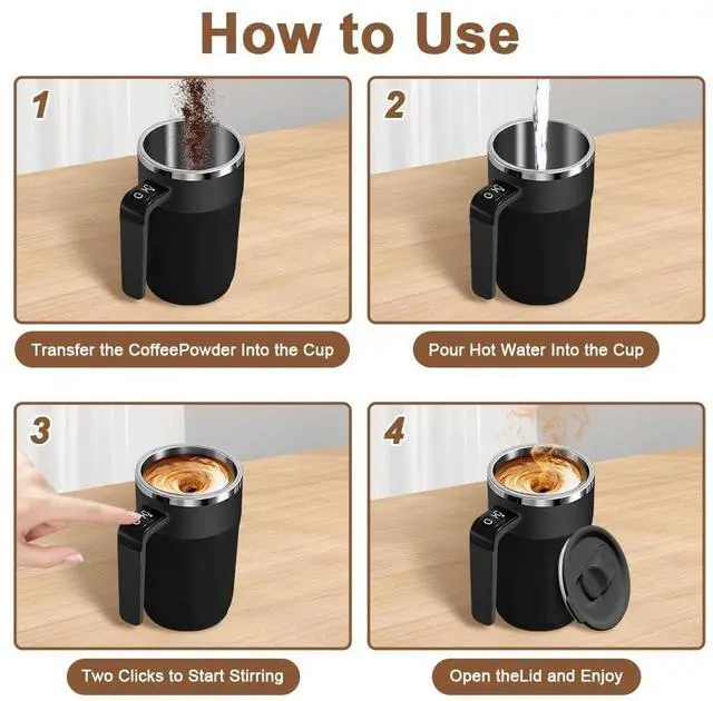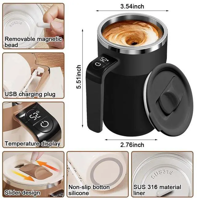 It is very suitable for coffee, tea, hot chocolate, milk, protein shakes, lemonade, broth and many other lightly mixed beverages that can be stirred. Note: This selfstirring mug offers automatic stirring and temperature display, but does not have a heating function