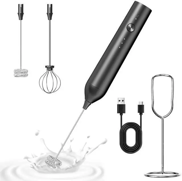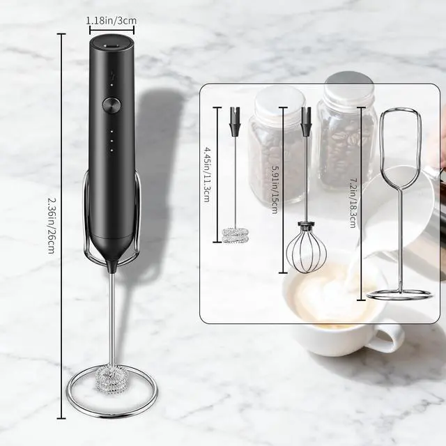Milk Frother Handheld Rechargeable, Hand Frother with Stand, Drink Mixer Frother Wand Electric Whisk Stirrer for Coffee, Latte, Matcha, Cappuccino, Hot Chocolate, Kitchen Gifts - Black