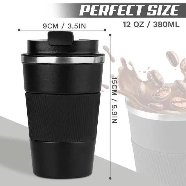 Vacuum-Insulated Stainless Steel Travel Coffee Mug, Leak-Proof Reusable Coffee Cup with Lid - Keep Hot & Cold Drinks for Hours, Durable Insulated Tumbler for Men & Women(3rd-Black, 12OZ)