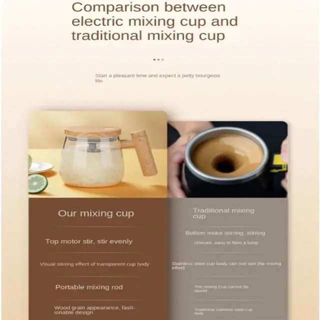 - The automatic mixing cup is made of high borosilicate glass, sudden cooling and rapid heating are not easy to burst.