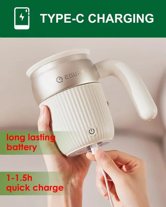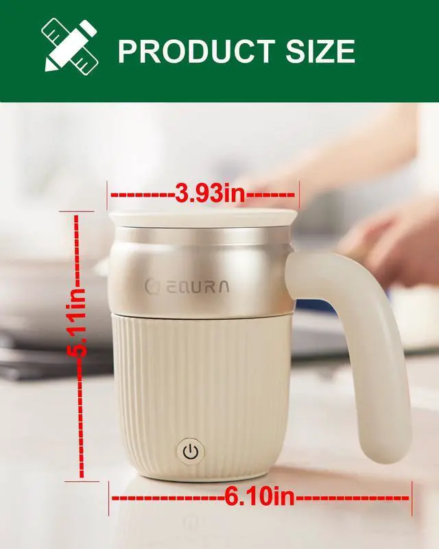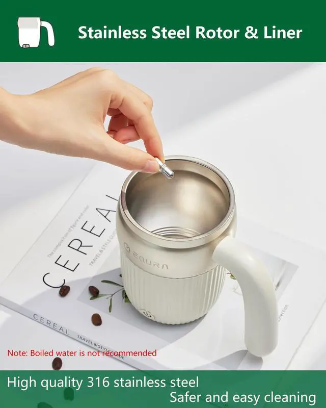 Merchant VideoEQURA Automatic Self Stirring Coffee Mug, Rechargeable Megnetic Auto Mixer Cup 15oz, for Coffee/Milk/Tea/Cocoa, for Home/Travel/Office, Gifts for Birthday/Christmas
