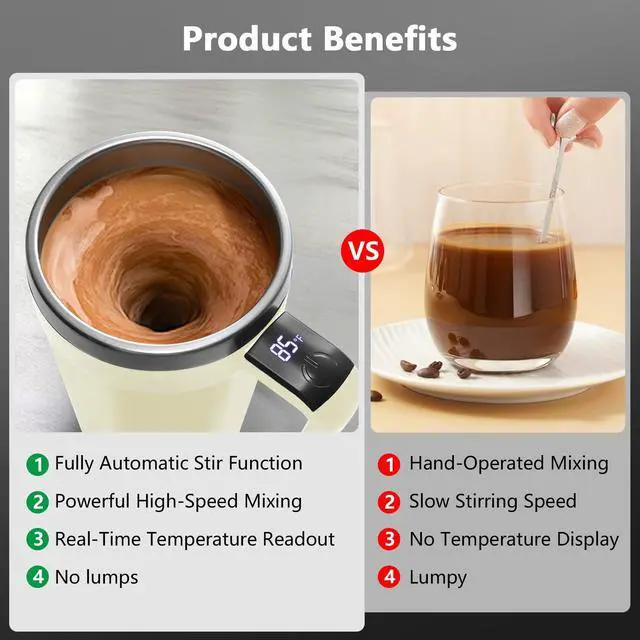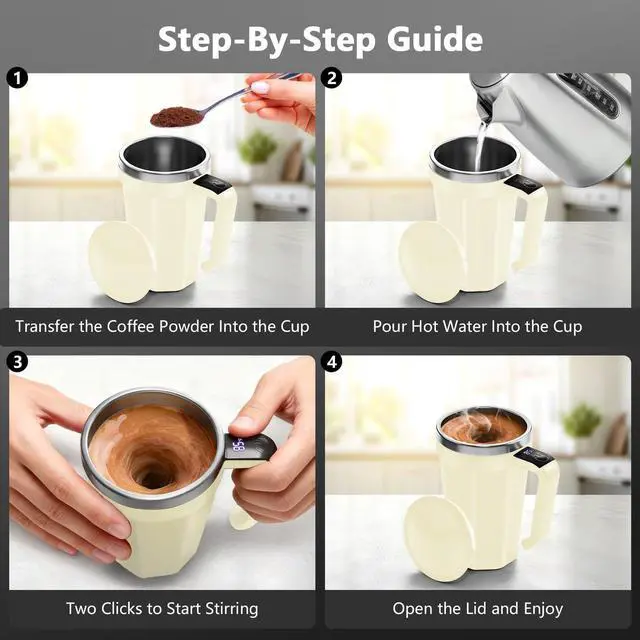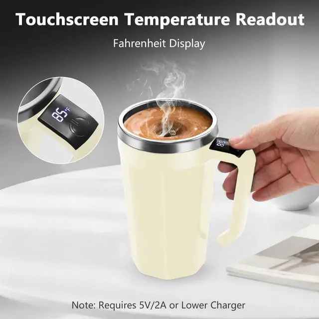 Of course! This self stirring coffee mug features an upgraded Fahrenheit temperature display and a 20-second blending countdown. The handle displays real-time temperature information, and comes with a spill-proof lid to prevent splashing.