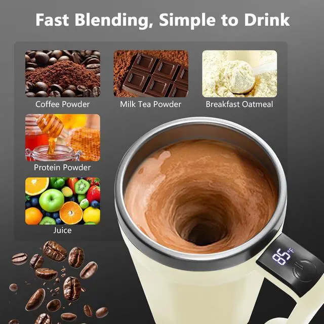 This self stirring mug is perfect for blending a variety of drinks, such as coffee, milk, cocoa powder, and protein powder. It blends coffee or drinks in 20 seconds, eliminating clumping and manual mixing.