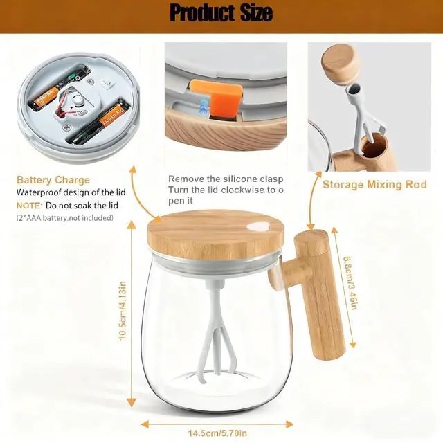 – Premium glass mug & detachable electric stirrer