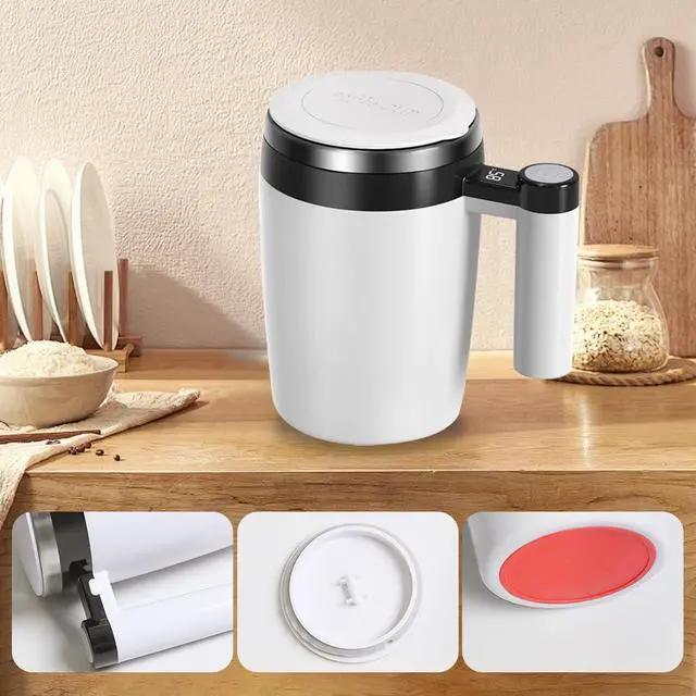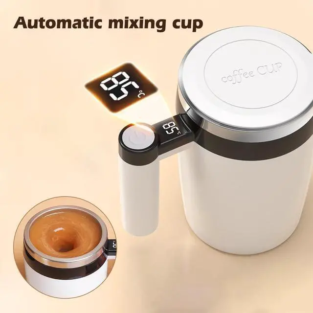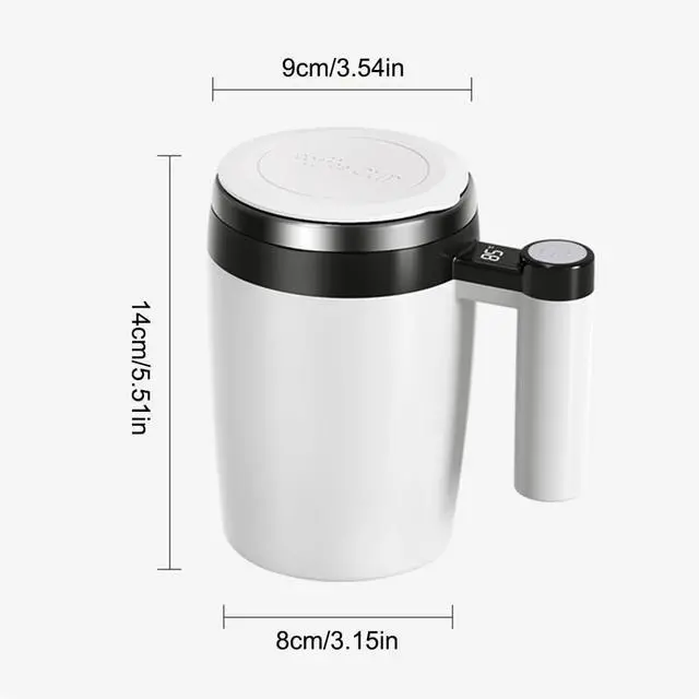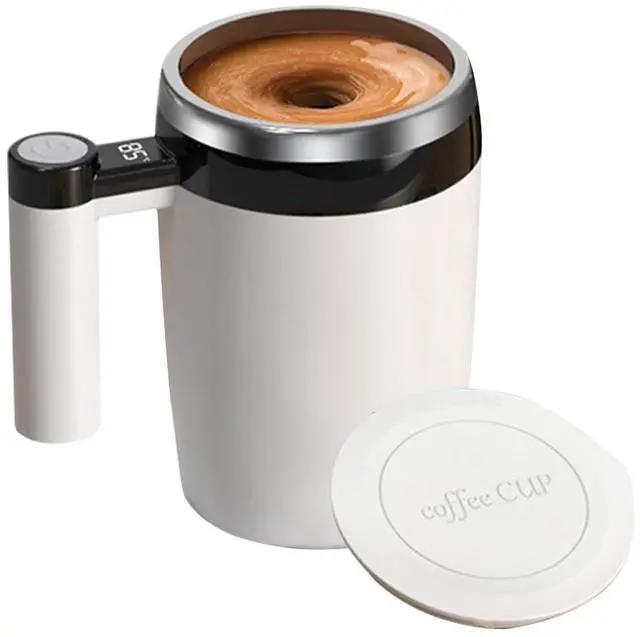 Press the button to start the automatic self-stirring, the mug mixes a drink in minutes and all you need to do is press that button and wait for it stops.