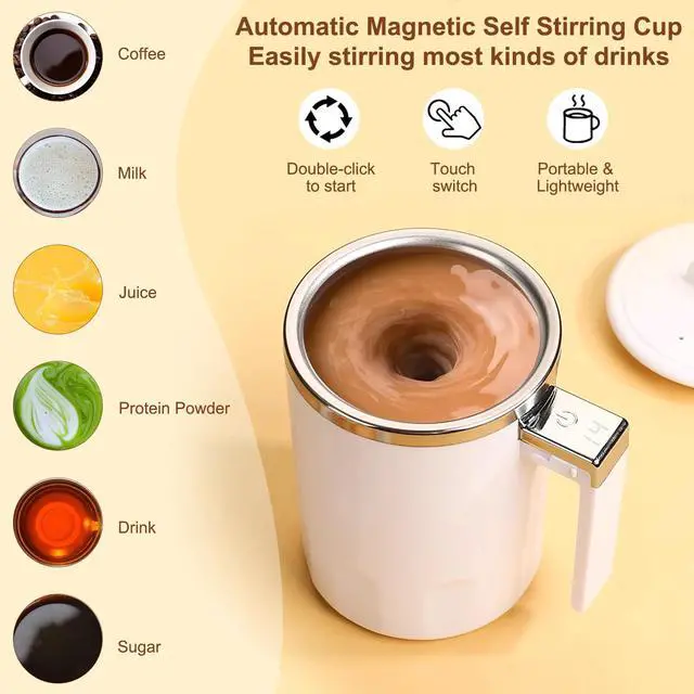 The self-stirring magnetic mixing mug is rechargeable, it come with a USB charging pot, easy to store most kinds of drinks, such as Coffee, milk, juice, protein powder, drink and sugar.
