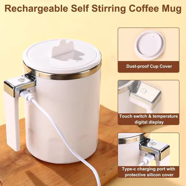 Rechargeable Self Stirring Mug with Lid, VEREMUND Self-Stirring Magnetic Coffee Mug, Automatic Magnetic Mixing Cup, Electric Magnetic Stirring Cup for Coffee, Tea, Milk 12oz White