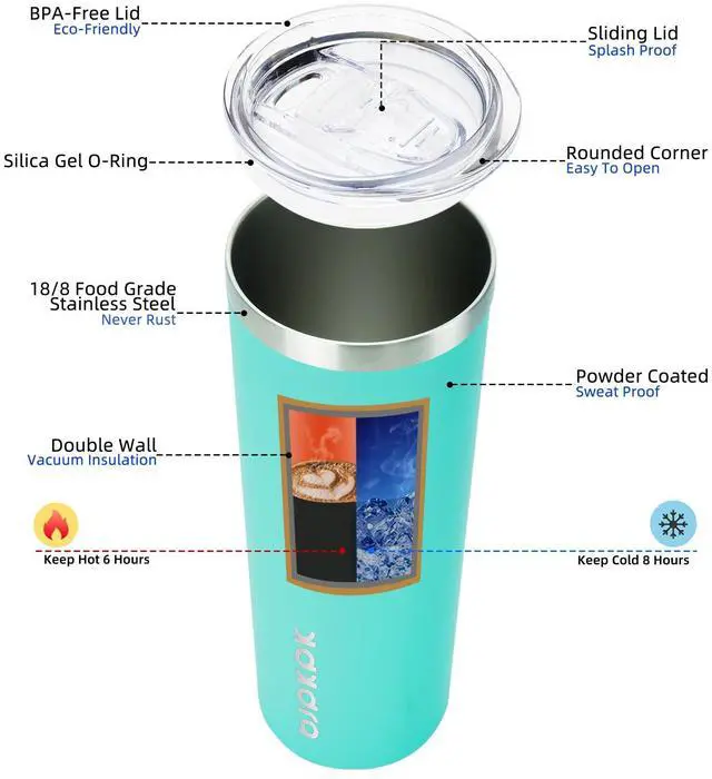 The BJPKPK insulated tumbler fits seamlessly into your busy life, with a slim design that works in car cup holders, backpacks, and work bags.