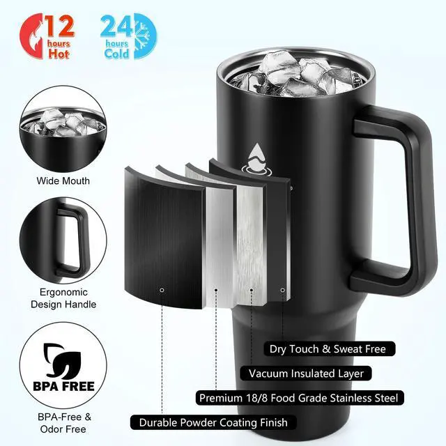 40 oz Insulated Water Bottle Fits in Cup Holder