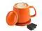 Smart-Warming Ceramic Coffee Cup, 4H Temperature Control with Auto Shut Off, 15W Wireless Charger Coaster, Hot Beverage Warmer with Splash-Proof Lid, 380ml/ 12.8 fl oz (Orange)