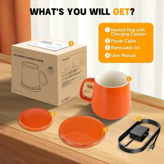 Complete Ready-to-Use Kit: Includes smart warmer base, ceramic cup, wireless charging coaster, micro USB cable, and removable lid. Perfect gift for home or office use - a thoughtful upgrade for any coffee lover