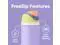 Patented FreeSip spout designed for either sipping upright through the built-in straw or tilting back to swig from the spout opening