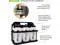 Carrier is made of durable plastic and folds flat for easy storage Plastic bottles are quart size and feature a wide mouth, push/pull tip Set includes 6 plastic quart size water bottles and 1 collapsible plastic carrier MADE IN: China