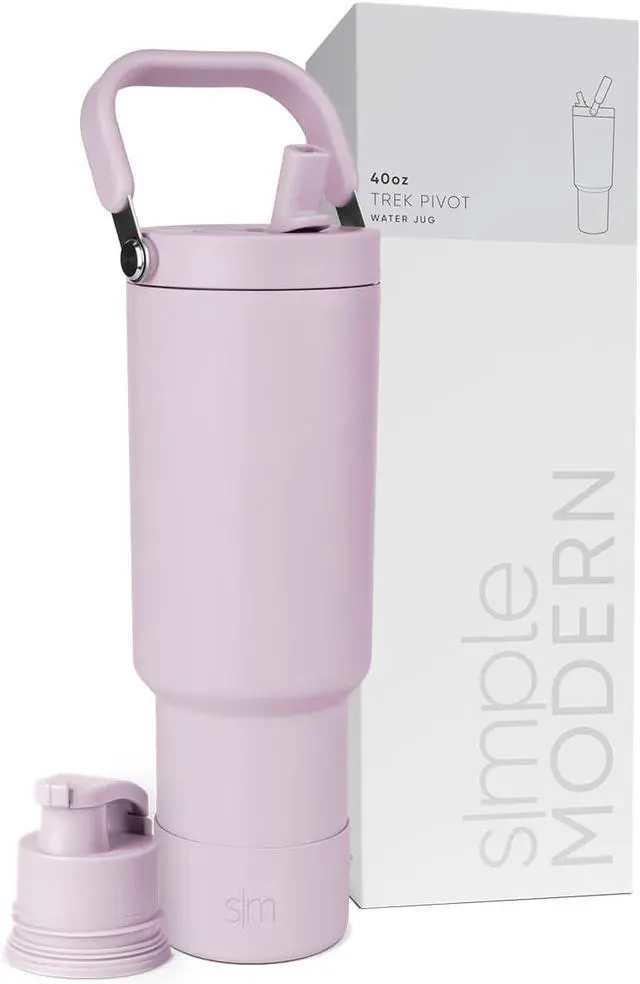 Simple Modern Trek Pivot | 40oz Flip Straw Tumbler with Handle | Water Bottle & Boot | Interchangeable Straw & Chug Lids | Insulated Stainless Steel Jug | Gym Sports Outdoors | Lavender Mist