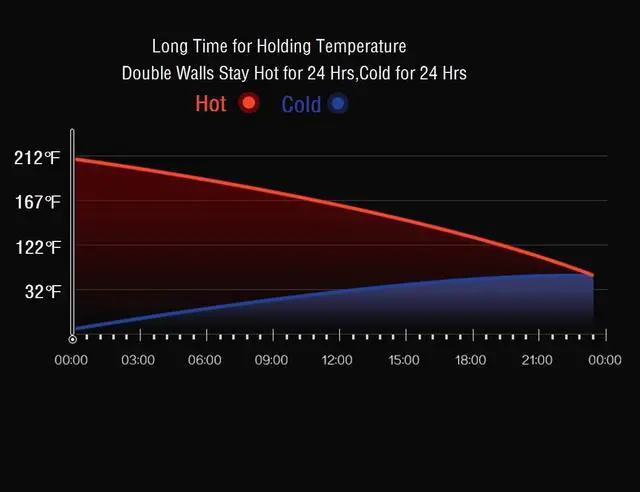 Long Time for Holding Temperature ----Featured dual walls, premium coated copper on the exterior of the inner wall. High performance temperature retention, keep liquid hot up to 24 hrs and cold up to 24 hrs.