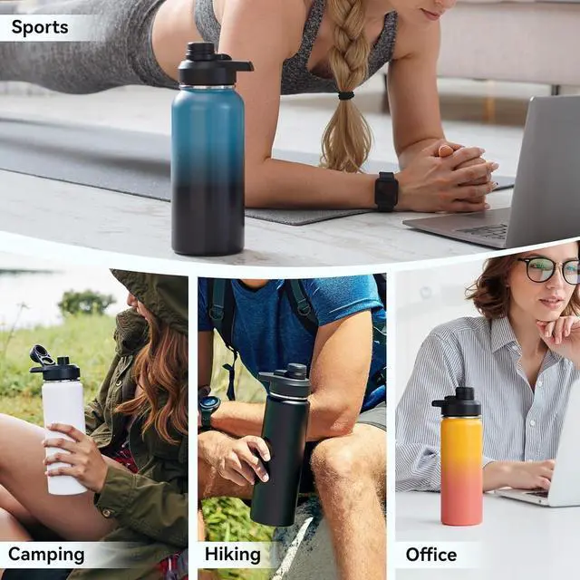 Beautiful&Attractive: Our water bottle is available in four stunning colors: black, white, blue-black gradient, and yellow-orange gradient. These beautiful colors, paired with stylish designs, make it perfect for a variety of outdoor activities such as hiking, camping, and sports. In addition to being a practical accessory, our insulated water bottle also makes the perfect gift for someone special.