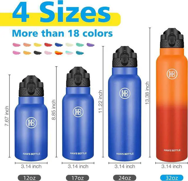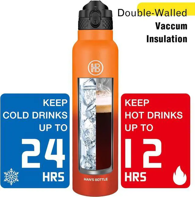 : The double wall insulation makes the Han' s Bottle sweet-free. Keep your beverages hot for up to 12 hours and cold for up to 24 hours. Our stainless steel water bottles are leakproof which is the best water bottles for mens and womens.