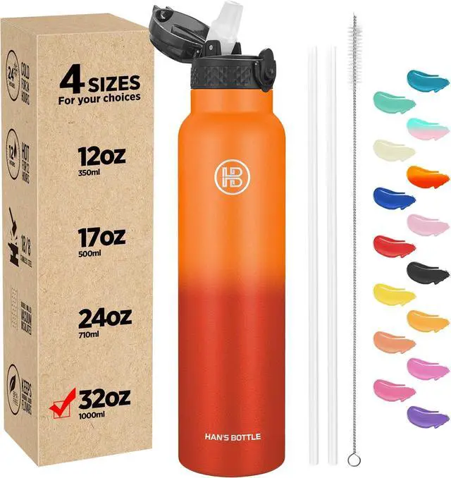 &: Han' s Bottle is made of food grade 18/8 premium stainless steel which is 100% BPA free and fully resistant to oxidation and corrosion. Never leave a metal taste or rust. More durable, soft straw lids designed to avoid choke. Each water bottle insulated comes with 1 straw brush and 2 extra straws included as a replacement.