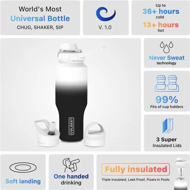 -: Have you ever experienced the frustration of leaky water bottles ruining your belongings? Bid farewell to those messy mishaps with our ultimate leak-proof design. The Coldest sports water bottle' s advanced technology ensures not a single drop escapes, while the three super-insulated lids guarantee a secure seal for any activity. Choose the bottle that is compatible with the cirkul lid and keeps pace with your dynamic life.