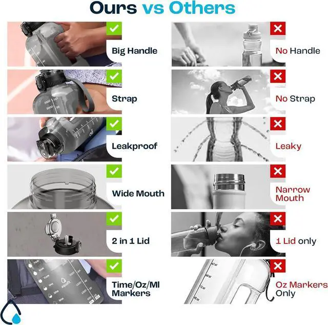 Track How Much You Drink - Our BPA Free one gallon water bottles come with time markers on the side so you can see your daily water intake and stay on track meet your health and fitness goals.