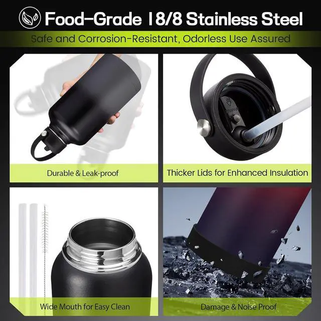 Retention: Keep water cold for 48 hours and hot for 24 hours with our triple-wall vacuum insulation technology. This locks in temperature like a fortressperfect for scorching hikes, gym sessions, or by the pool. The triple-wall design also eliminates condensation and burns, The non-slip, BPA-free lids for one-handed ease of operation. Whether you' re battling summer heat or winter chills, this insuated water bottle is your hydration hero