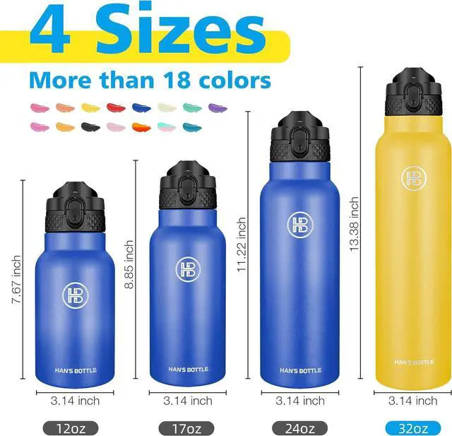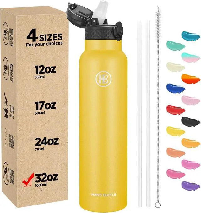 &: Han' s Bottle is made of food grade 18/8 premium stainless steel which is 100% BPA free and fully resistant to oxidation and corrosion. Never leave a metal taste or rust. More durable, soft straw lids designed to avoid choke. Each water bottle insulated comes with 1 straw brush and 2 extra straws included as a replacement.