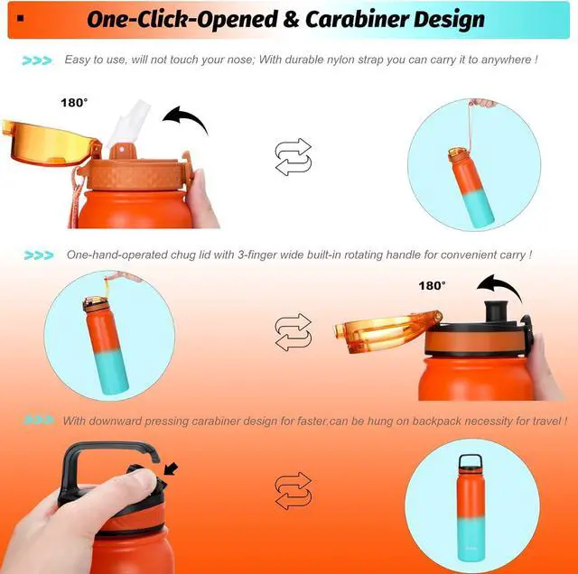 • Multiple Choices: Included are a straw lid, chug lid, and carabiner lid. 3 different lids can mostly meet your daily use.