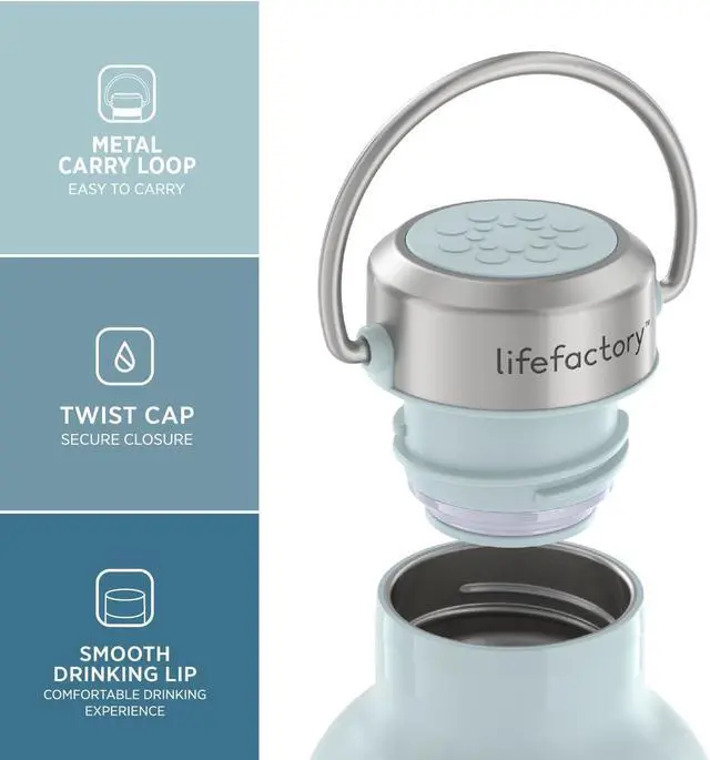 Stainless steel cap with easy carry loop; cap twists for secure closure