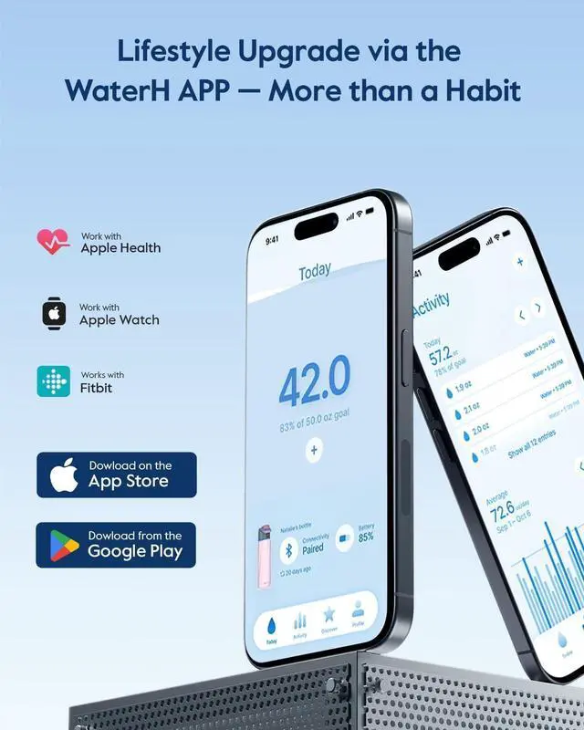 REMINDER TO REACH GOAL: Our WaterH smart bottle is a game-changer, featuring built-in hydration reminders and tracking capabilities. The light ring on the lid, the LED display, and the notifications on your phone or smartwatch help you avoid the negative effects of dehydration caused by forgetting to drink watersuch as dizziness, increased blood pressure, and fatigue. It also helps you reach your wellness goals and develop lasting hydration habits.