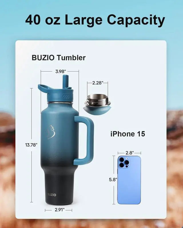 Vacuum Insulated: Elevate every sip with double-layer vacuum insulation, powered by BUZIO ThermoArmour technology. Keeps drinks icy cold for 48 hours or piping hot for 24 hours, with zero metallic aftertastepure, refreshing flavor, every time