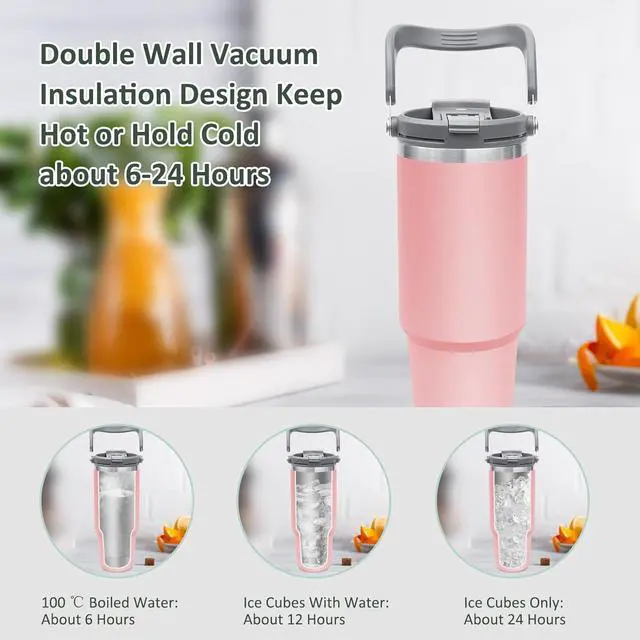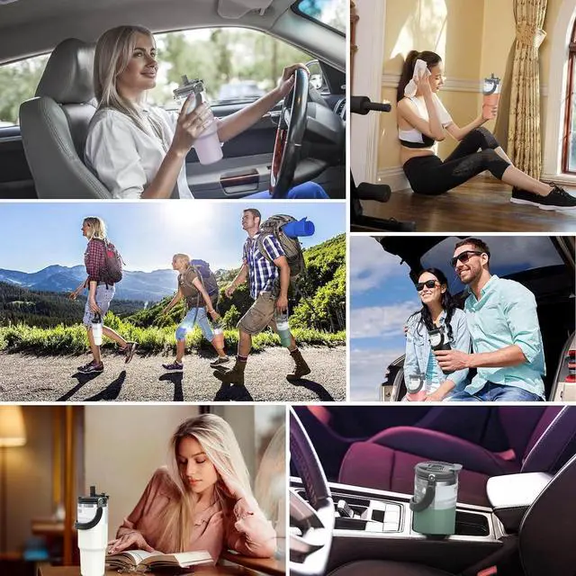• !!! --- The ergonomically designed carry handle fits the tumbler body and can even be used as a mobile phone holder, frosted protection paint makes you hold the tumbler comfortable. The tumbler is large and light, widely used it in daily life and outdoor adventures and fits most vehicle cup holders, you can use it at home, office, library, travel, beach, perfect for sporting active such as camping, hiking, walking or just driving.