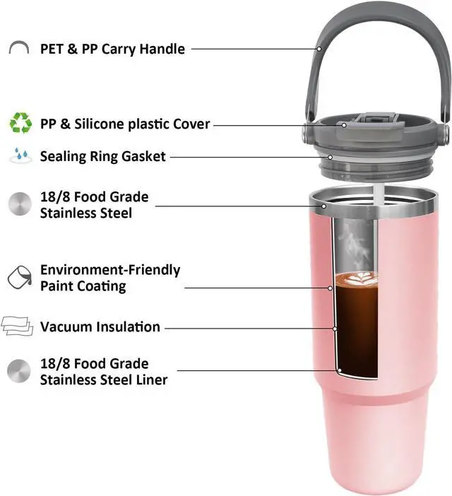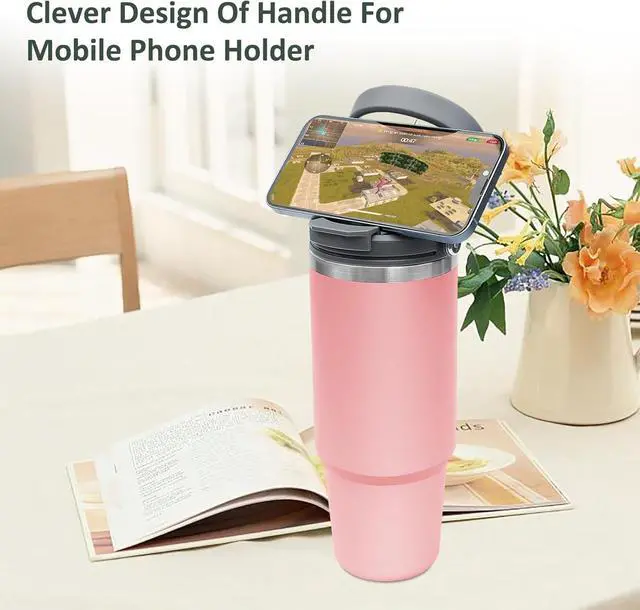 !!! --- The ergonomically designed carry handle fits the tumbler body and can even be used as a mobile phone holder, frosted protection paint makes you hold the tumbler comfortable. The tumbler is large and light, widely used it in daily life and outdoor adventures and fits most vehicle cup holders, you can use it at home, office, library, travel, beach, perfect for sporting active such as camping, hiking, walking or just driving.