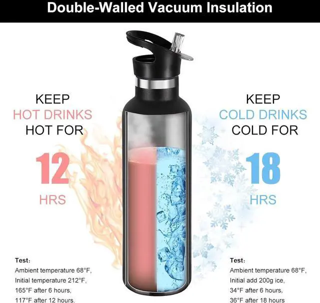PERFECT SIZE & KEEP WARM FOR A LONG TIME: Our double wall insulated bottle protects temperature for up to 12 hours cold & hot. The 24 Ounces stainless steel water bottle is perfect for everyday use and the cups fit on the bike cup holder and inside the backpack - for your hiking, biking, beach, camping and fitness!