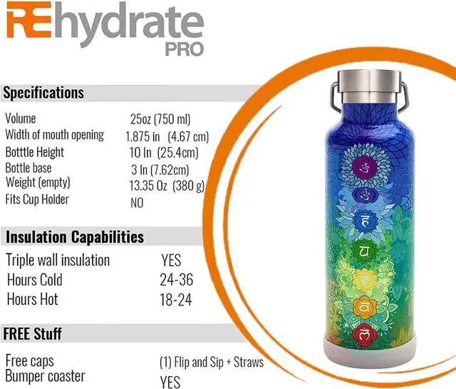PREMIUM QUALITY AND ERGONOMIC DESIGN: - Rehydrated Pro insulated water bottle is made from sturdy and top-quality 18/8 food-grade stainless steel, which is fully resistant to corrosion, and non-toxic BPA-free plastics; These premium stainless steel insulated water bottles are safe, attractive, and easy to clean