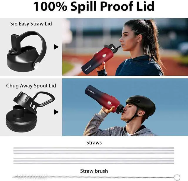 PACKAGE: You will get 1x SENDESTAR 32 oz Water Bottle, 1 x Spout Lid, 1 x Flex Straw Lid, 2 x Straws, 1 x Straw Brush. If you have any problems, just contact us and we will resolve your problem in time!