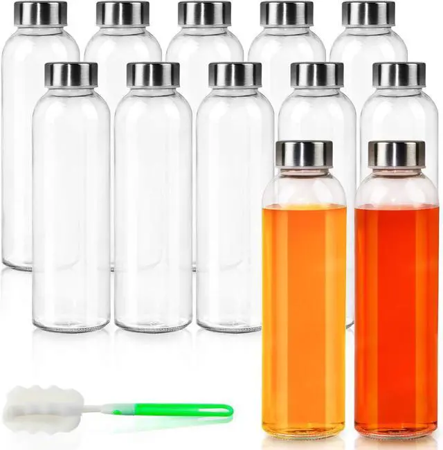 Complete Set: Package includes 12 empty glass water bottles and 1 sponge brush for convenient storage and cleaning.